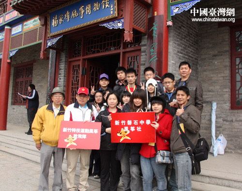 新竹市磐石中學(xué)的師生們?cè)跅罴也猴L(fēng)箏博物館前合影留念。(中國(guó)臺(tái)灣網(wǎng) 楊永青 攝)