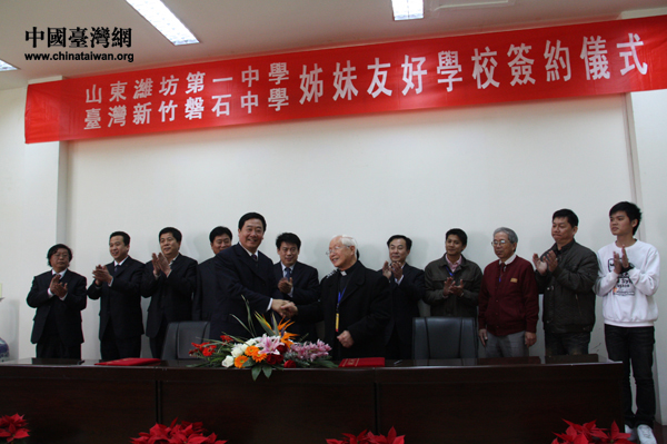 2010年4月19日上午,山東濰坊一中和臺(tái)灣新竹磐石中學(xué)舉行了姊妹友好學(xué)校簽約儀式。(中國(guó)臺(tái)灣網(wǎng) 楊永青 攝)