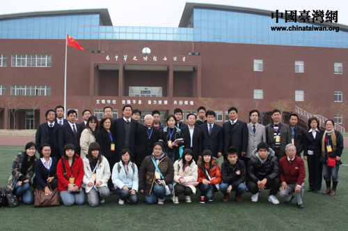 在濰坊一中的操場(chǎng)上合影留念(中國(guó)臺(tái)灣網(wǎng) 楊永青 攝)