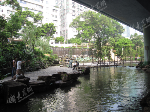 如今的東濠涌水質清澈,居民在水邊打太極、讀書