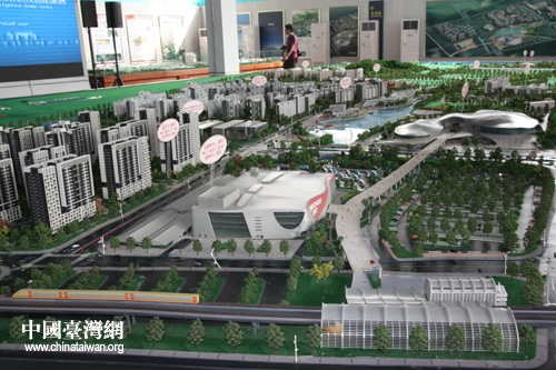 位于歡迎中心的沙盤模型生動形象地呈現了廣州亞運城的整體布局(中國臺灣網 趙輝 攝)