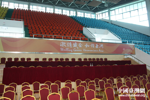 東莞體育館內(nèi)部,廣州亞運(yùn)會(huì)舉重比賽15枚舉重比賽的金牌將在此決出(中國臺(tái)灣網(wǎng) 趙輝 攝)