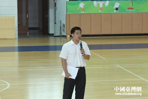 東莞市體育局副局長(zhǎng)詹志雄為媒體介紹亞運(yùn)會(huì)籌備情況(中國臺(tái)灣網(wǎng) 趙輝 攝)