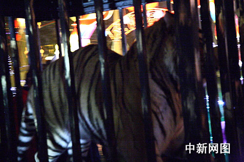 中新網(wǎng)成都2月8日電(霍潺張浪)8日,在第二屆成都金沙太陽節(jié)的開幕當(dāng)晚,威風(fēng)凜凜的真老虎現(xiàn)身,直接帶領(lǐng)游客“奔向”2010虎年主題。