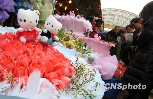 2月13日,每年的情人節歷來都是鮮花店主翹首以盼的日子,而年宵花市場更是每年花卉銷售的重中之重。由于今年中國農歷虎年的大年初一與情人節正好“邂逅”,使得這兩天的上;ㄊ猩馐只鸨 中新社發 湯彥俊 攝