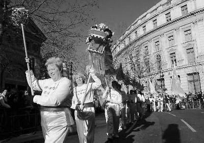 英國舞龍表演隊舞起中國龍助興