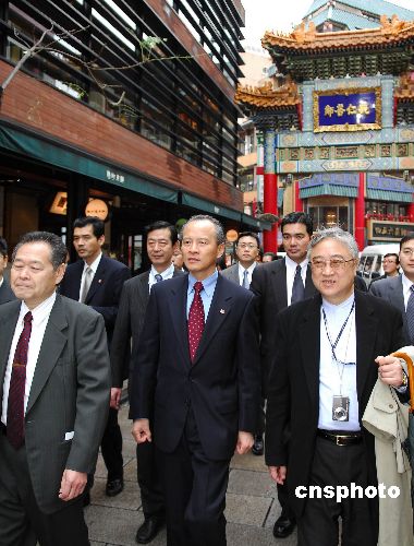 2009年1月23日上午,中國(guó)駐日本國(guó)特命全權(quán)大使崔天凱冒雨前往橫濱中華街,向當(dāng)?shù)厝A人華僑拜年。崔天凱與橫濱華僑總會(huì)會(huì)長(zhǎng)任政光親切會(huì)談,慰問熱心資助教育的愛國(guó)華僑吳桂顯先生的遺孀,在臺(tái)灣同胞茶店品茶論道等,親身體驗(yàn)當(dāng)?shù)厝A人生活。崔天凱還視察了橫濱中華街關(guān)帝廟、媽祖廟等建筑,并出席華僑主辦的歡迎午宴。 中新社發(fā) 侯宇 攝