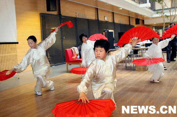 《木蘭扇》表演隊是學(xué)生會專門請來的。新華網(wǎng)記者李國榮 攝