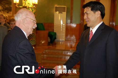 中國駐俄大使李輝與俄羅斯著名漢學家、俄中友協名譽主席齊赫文斯基院士親切交談。