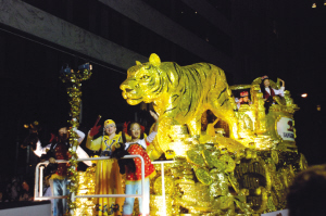 威猛的老虎是虎年新春大游行必不可少的主角。 (美國僑報 吳卓明攝)