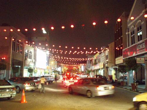 5000盞紅紅燈籠高高掛,加影市區散發著濃濃的新春氣息。(圖:光明日報)