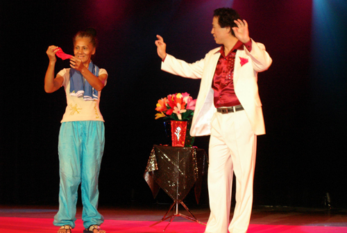 “文化中國·四海同春”2010年春節赴塔希提藝術小組當地時間2月18日晚在法屬波利尼西亞首府帕皮提進行首場演出。圖為魔術表演。