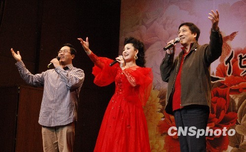 “文化中國·四海同春”文藝晚會28日晚為紐約華人華僑們獻上了一臺精彩演出。當晚適逢正月十五,演員和臺下觀眾情緒高漲、互動不斷,令演出在紐約掀起一輪高潮。現場觀眾也不斷為演出制造驚喜:當著名歌唱家夢鴿希望和一位現唱觀眾合唱“天仙配”時,有兩位熱情的男歌迷同時沖上了舞臺,而且都唱功了得,獲得喝彩一片。 中新社發 魏晞 攝