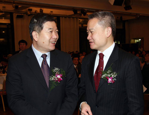 任啟亮(左)和劉海星(右)在歡迎招待會(huì)上