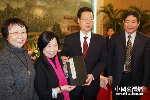 同時張高麗簡要介紹了濱海新區的經濟發展和津臺兩地間日益密切的合作交流情況,希望津臺兩地進一步加強人員往來,擴大社會各界交流,大力弘揚中華文化,鞏固兩岸的精神紐帶。