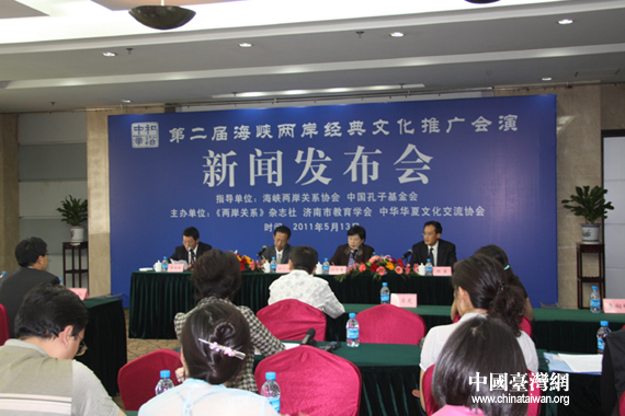 以“萬眾共詠千古經(jīng)典,兩岸齊頌和諧中華”為主題的“和諧中華·第二屆海峽兩岸經(jīng)典文化推廣會演”今日在濟南舉行新聞發(fā)布會宣布啟動,發(fā)布會并介紹了活動的組織安排情況與亮點。(中國臺灣網(wǎng) 楊麗 攝)