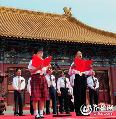 學(xué)生代表宣讀《兩岸青少年攜手弘揚(yáng)中華經(jīng)典文化倡議書》