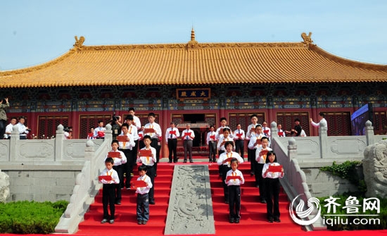 和諧中華·第二屆海峽兩岸經典文化推廣會演"在濟南府學文廟隆重開幕。海峽兩岸2萬余名學生,在18名"中國少年孔子獎"獲得者引領下齊聲誦讀論語名句