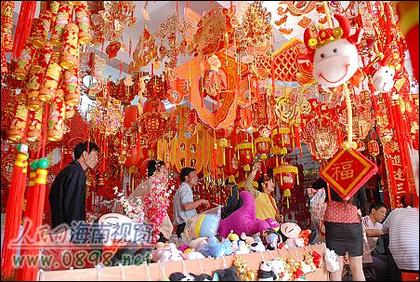 1月16日,海南三亞的街頭年味漸濃。農歷牛年將至,三亞市民紛紛來到街上,選購大紅燈籠、中國結、春聯等,迎接新春佳節的到來。