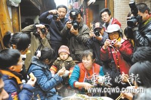 “在城里無法體會(huì)這種濃郁的年味,中山古鎮(zhèn)的居民保持了最淳樸的民風(fēng),也沿襲了最傳統(tǒng)的民間習(xí)俗。”李惠敏是一名數(shù)學(xué)老師,聽說千米長(zhǎng)宴消息后,她和幾個(gè)朋友前一天就從江北來到中山等著。“這里的年味是最濃、最地道的,我明年還要來。”李惠敏說。(周立)