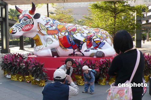 2009年臺北奔牛節從2月3日一直到3月底在臺北市展出,總計在市府前的市民廣場、華山藝文特區、信義香堤廣場、捷運西門站、故宮博物院等12個重要景點與公共空間,展出107頭由多位藝術家創作的彩繪牛。中新社發 路梅 攝