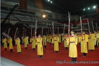 2008年兩岸師生聯(lián)合祭孔大典,遵循古禮在新竹縣立體育館舉行。(來源:臺灣“今日新聞”)