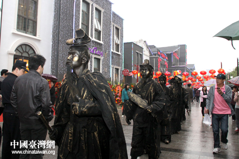 為期17天的“2011北京臺灣文化藝術節”將推出系列展演活動,圖為涂繪成秦朝將士的演員在北京臺灣街行進,吸引了眾多路人眼球。(中國臺灣網 普燕 攝)