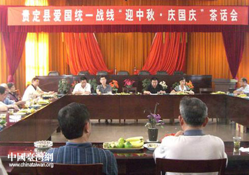 中國臺灣網9月21日貴定消息 日前,貴州省貴定縣隆重舉行了愛國統一戰線“迎中秋·慶國慶”茶話會。來自貴定的臺胞臺屬代表、僑胞僑眷代表、非公有制經濟人士代表、少數民族代表、宗教界代表、無黨派人士代表以及統戰系統成員單位代表等共計70余人歡聚一堂,喜迎中秋,暢談發展,齊議和諧。