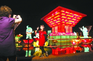 昨晚7時,整個龍潭公園沿湖岸一周水面、陸地照如白晝,各色燈組大放異彩。一直持續到10月7日,每天從下午4時至晚上10時,第五屆“龍潭燈會”都將在位于新東城區的龍潭公園內如期迎接游客的到來。