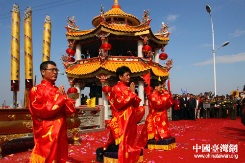 3名分別來自廈門、臺灣、東南亞的主祭人。(中國臺灣網 董潔 攝)