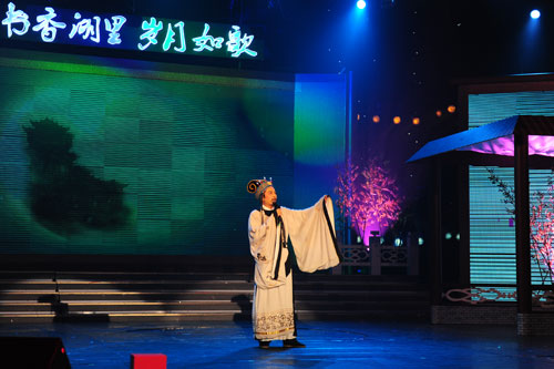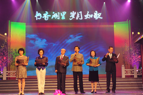 “第三屆福德文化節(jié)”系列活動(dòng)——2010年《書香湖里 歲月如歌》經(jīng)典詩(shī)文誦讀晚會(huì)在廈門廣電中心演播廳舉行。圖為濮存昕在誦讀晚會(huì)上朗誦《岳陽(yáng)樓記》。(湖里臺(tái)辦)