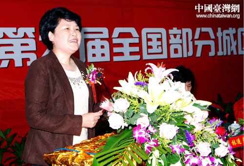 廈門湖里區(qū)政府傅曉春副區(qū)長在開幕式上致歡迎詞。(圖片來源:湖里區(qū)臺辦)
