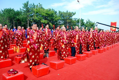 3名分別來自廈門、臺灣、東南亞的主祭人帶領(lǐng)著250名同祭人參加了以“感恩土地孕育萬物,祈盼兩岸福澤綿長”為主題的盛大祈福頌典儀式。3名主祭人向福德正神敬獻(xiàn)了香、鮮花、牲果、酒、祝文。250名同祭人跟隨著3名主祭人行叩拜之禮。
