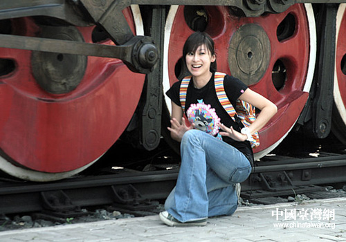 臺灣中視主持人張棋惠小姐與車輪比高 圖片來源:沈陽市臺辦