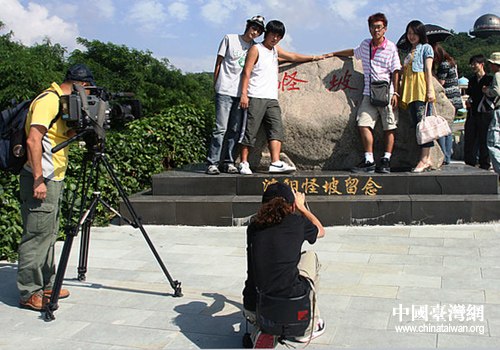在沈陽怪坡留念(圖片來源:沈陽市臺辦)