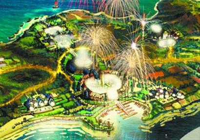 11月29日,大連長山群島旅游避暑度假區綜合開發項目在長海縣最大的島嶼——廣鹿島舉行啟動儀式。未來幾年內,海昌集團將斥資100億元實施長山群島諸島中6個島嶼的相關區域開發,建設旅游綜合開發項目。據介紹,項目建設將充分融合長山群島獨特而優越的資源優勢,以群島為主題,按照休閑度假、避暑觀光、康體養生、生活體驗四大主題構想,使未來的長山群島處處有主題、島島有風景。圖為項目手繪效果圖。 (記者/王榮琦 攝)
