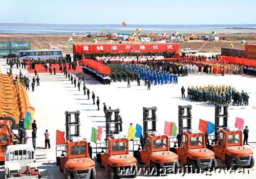據了解,盤錦港為綜合性港區,港區占地面積40平方公里,規劃建設生產性泊位60個,吞吐能力可超億噸,先期建設2個多用途泊位,2個油品泊位,泊位水工結構5萬噸級,多用途碼頭長度401米,油品碼頭長度666米,泊位前沿水深14.5米,并配套建設航道工程。到今年年底再投產一個多用途泊位和兩個成品油泊位,屆時將形成散雜貨和油品1000萬噸以上的通過能力。