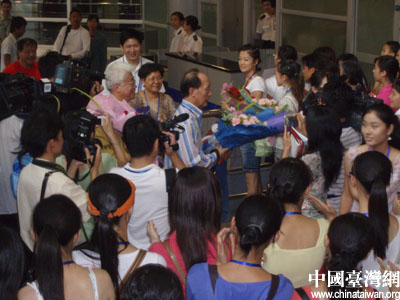 | 中國(guó)臺(tái)灣網(wǎng)8月6日長(zhǎng)沙消息 昨天下午4點(diǎn)45分,參加“湖湘文化之旅”的140多名臺(tái)灣代表抵達(dá)湖南長(zhǎng)沙黃花機(jī)場(chǎng)。這140多名代表主要是來(lái)自臺(tái)北藝術(shù)大學(xué)、東吳大學(xué)、輔仁大學(xué)、實(shí)踐大學(xué)、臺(tái)南科技大學(xué)等10多所臺(tái)灣院校的院長(zhǎng)、教授、教師、研究生、大學(xué)生。他們將與60多名來(lái)自湖南大學(xué)、湖南師范大學(xué)、湖南理工學(xué)院的湖南學(xué)子一起牽手“湖湘文化之旅” 交流活動(dòng),為期10天。