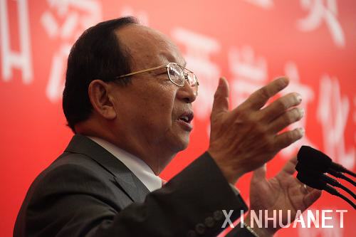 7月12日,中國國民黨主席吳伯雄在閉幕式上講話。當日,第五屆兩岸經貿文化論壇在長沙閉幕。 新華社記者 李尕 攝