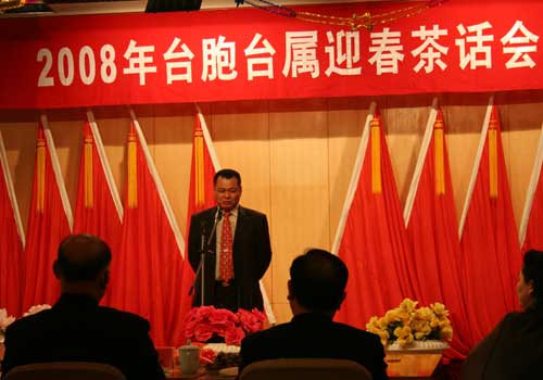 自治區黨委副秘書長、臺辦主任蘇培學在茶話會上致辭