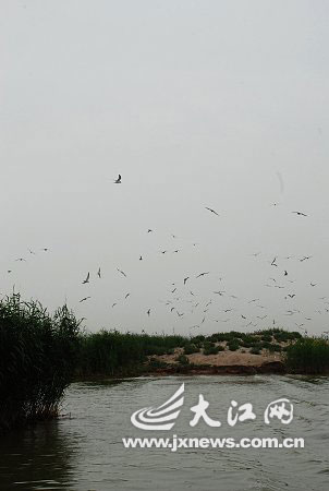 游船經(jīng)過(guò),驚起鳥(niǎo)兒無(wú)數(shù)。