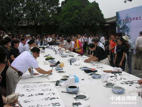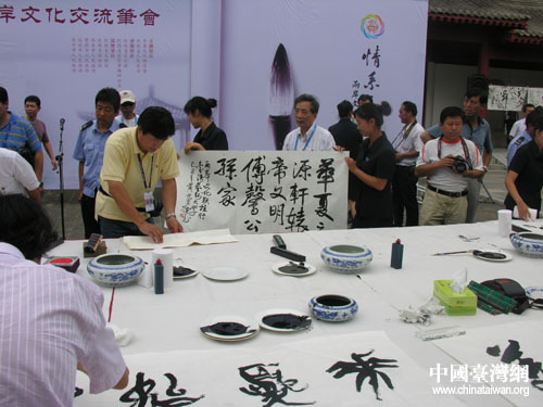 兩岸書法家揮毫潑墨。(中國臺灣網 蕪同 攝)