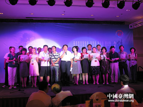 中國臺灣網7月23日西安消息 由中華文化聯誼會與陜西省政府主辦的“情系長安——兩岸文化聯誼行”,21日晚在古城西安圓滿閉幕。閉幕式上,參加此次活動的文化界人士為慶祝這次兩岸文化界的盛舉圓滿成功,舉行了一場別開生面的大聯歡。無論是衣冠楚楚的教授還是彬彬有禮的文化官員,無論是滿腹經綸的學者,還是各有所長的藝術家,每個人拿出看家本領,各顯其能,讓閉幕式沉浸在歡歌笑語中。