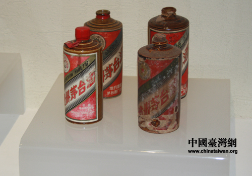 上世紀五十年代后的茅臺酒柱形瓶(中國臺灣網 李丹 攝)