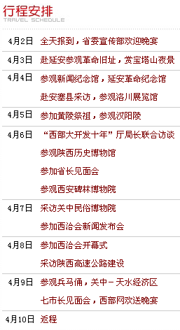 第四屆中國網絡媒體陜西行主要行程