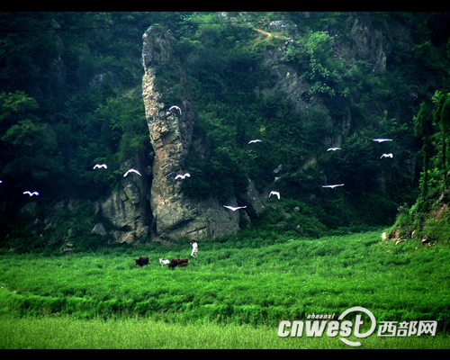 仙娥峰在商州城西北十里許,如今是庫(kù)容三四千萬(wàn)方的水庫(kù),稱(chēng)仙娥湖。這里南北兩岸峻峰壁立,江流逼仄,林木森森,溪水清沏,景色十分幽美。唐時(shí)這里設(shè)有驛站。白居易看到如此美好的地方,便想到商山四皓,想到躲避官場(chǎng)明爭(zhēng)暗斗的惡劣環(huán)境,這自然是失意封建官員的心里。這次南去詩(shī)人在江州司馬任上三年,他著名的《琵琶行》就作于這期間。任滿得到宰相崔群的援助,升任四川忠州刺史,在那里待了兩年左右,元和十五年(公元820年),憲宗暴死,穆宗繼位,白居易再經(jīng)商山道被召回長(zhǎng)安,于是寫(xiě)了一首五絕:《商山路有感》:“萬(wàn)里路長(zhǎng)在,六年身始?xì)w。所經(jīng)多舊館,大半主人非”。20個(gè)字道出了詩(shī)人六年被貶外放生活的無(wú)限感慨。眼前景物依舊,人事已非。這既是寫(xiě)實(shí),也道出了社會(huì)時(shí)局的重大變化。 |