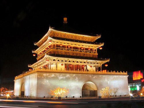 鐘鼓樓是西安的標志性建筑,位于市中心,鐘樓和鼓樓東西對峙。來到西安一定要體驗下“晨鐘暮鼓”,從環(huán)狀地下通道上到鐘樓,親手敲敲西北角上的那口明代鐵鐘,在悠揚的鐘聲里放眼四望,正對的西大街古建筑云集,紅瓦飛檐宛若仙界。在鐘樓看看東西南北四條大街,也許你會更懂西安。白天在鐘樓看風景,夜晚就要在黑暗中看鐘樓了。夜間的鐘樓在各色燈光的映照下,莊嚴,華美,神秘。欣賞鐘樓夜景后最適宜到鼓樓后面的回民街逛逛,這里是西安最有名的小吃街,賈三灌湯包,紅紅酸菜炒米,特色小甄糕,平娃烤肉……欲罷不能的小食。