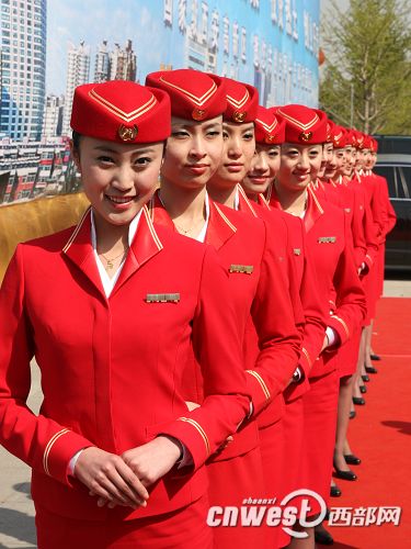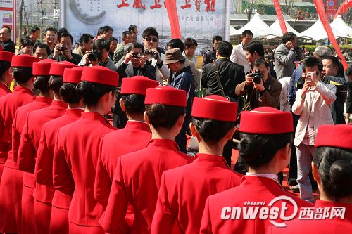 西部網訊 4月5日上午,第十三屆西洽會在西安隆重開幕。21位禮儀小姐的亮相,為西洽會添上了一道美麗的風景線。