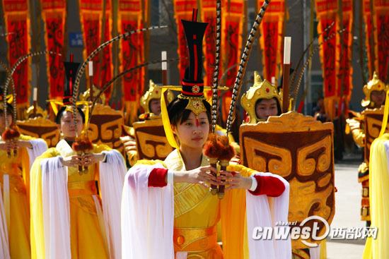 3月27號下午,陜西省藝術學校排練場上,400多名演員正在緊張排演今年清明公祭黃帝典禮的“樂舞告祭”。20歲的省歌舞劇院舞蹈演員王琳珊練得格外認真,今年是她第一次參加公祭典禮的“樂舞告祭”。