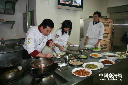 高雄餐旅學院的老師向學生教授廚藝(攝影 齊曉靖)